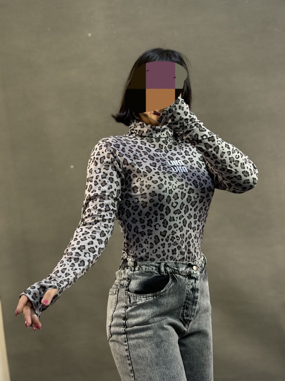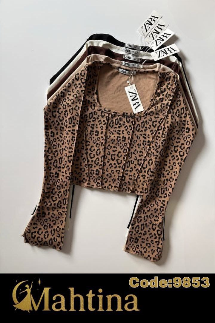 کراپ آستین بلند پلنگی کد :9853 نوع پارچه فانریپ