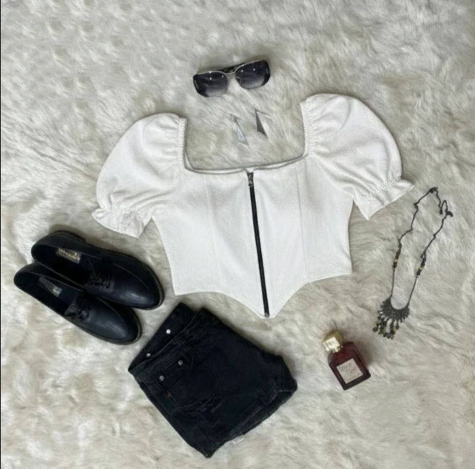 کراپ زیپی مجلسی آستین پفی نلین 📃کد 021122
