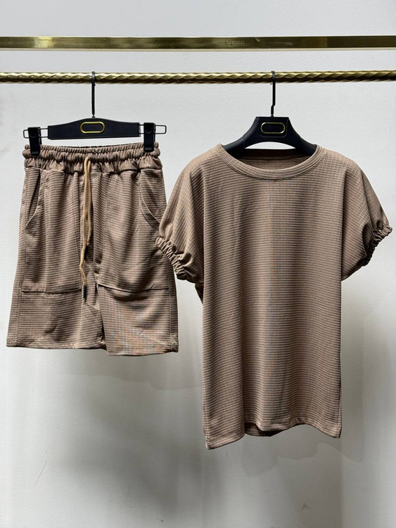 🧶🔥#ست تیشرت و شورتک بیسکویتی استین کشی