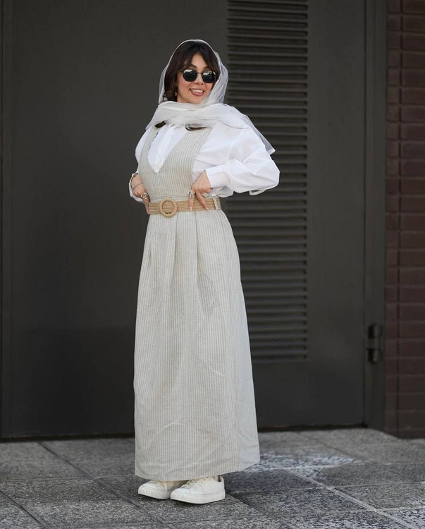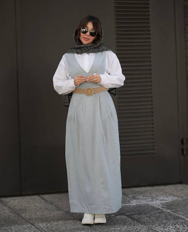 ست ۳ تیکه تتیس شامل :شومیز _سارافون_کمربند