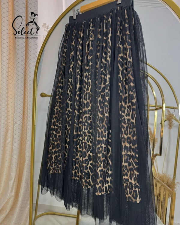 💥دامن پلیسه پلنگی توری
