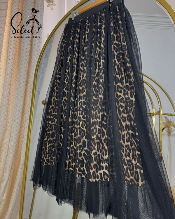 دامن پلیسه پلنگی توری سلکت