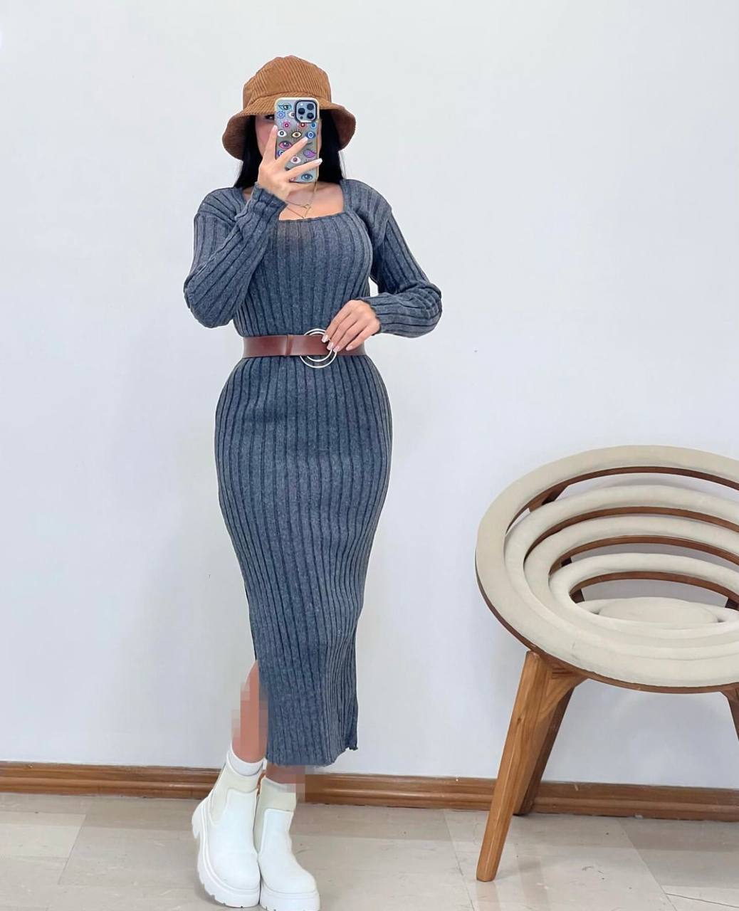 پیراهن یقه خشتی رومانو جنس کش بافت