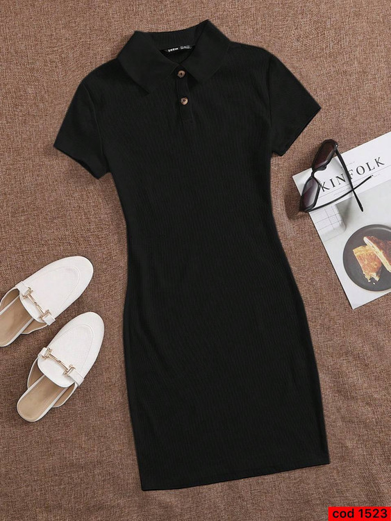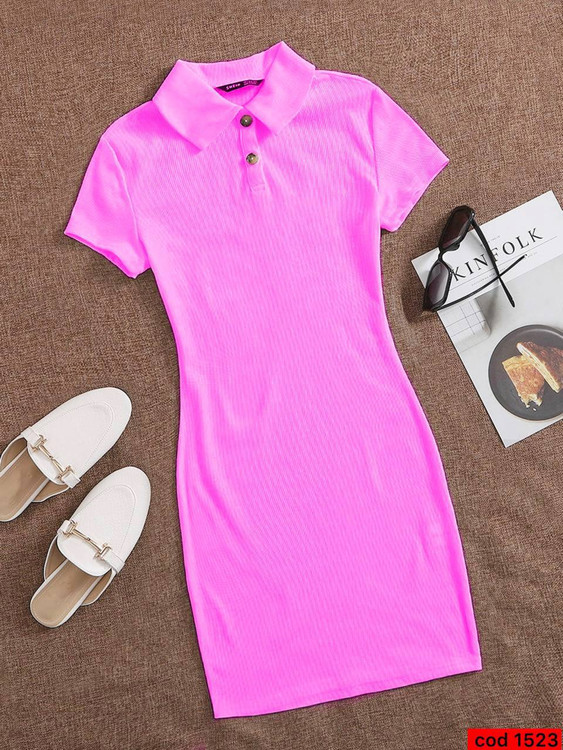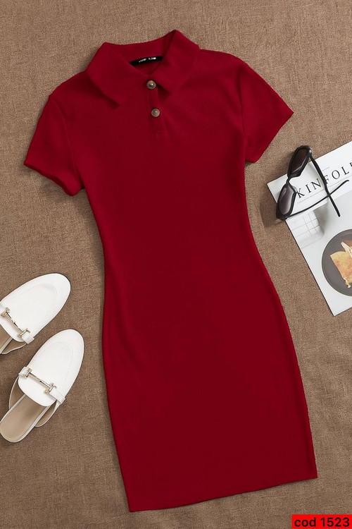 پیراهن یغه دار دکمه ایی آیسل قد کار ۸۵ سانتی کد 1523